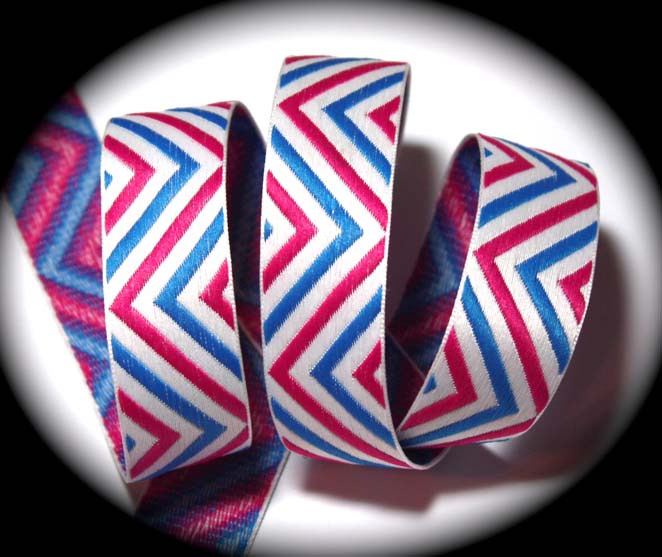 Chevron/Flame Stitch4aa -1" x 10 yds White, Fuschia Pink and Ca